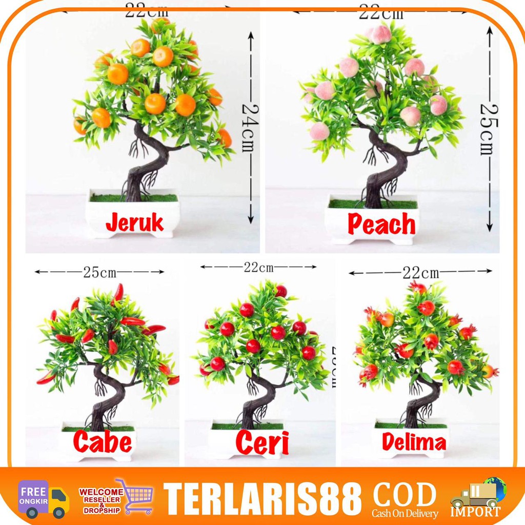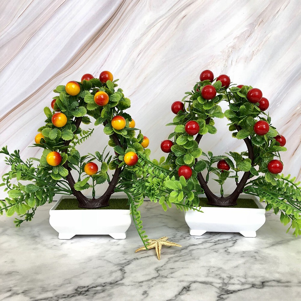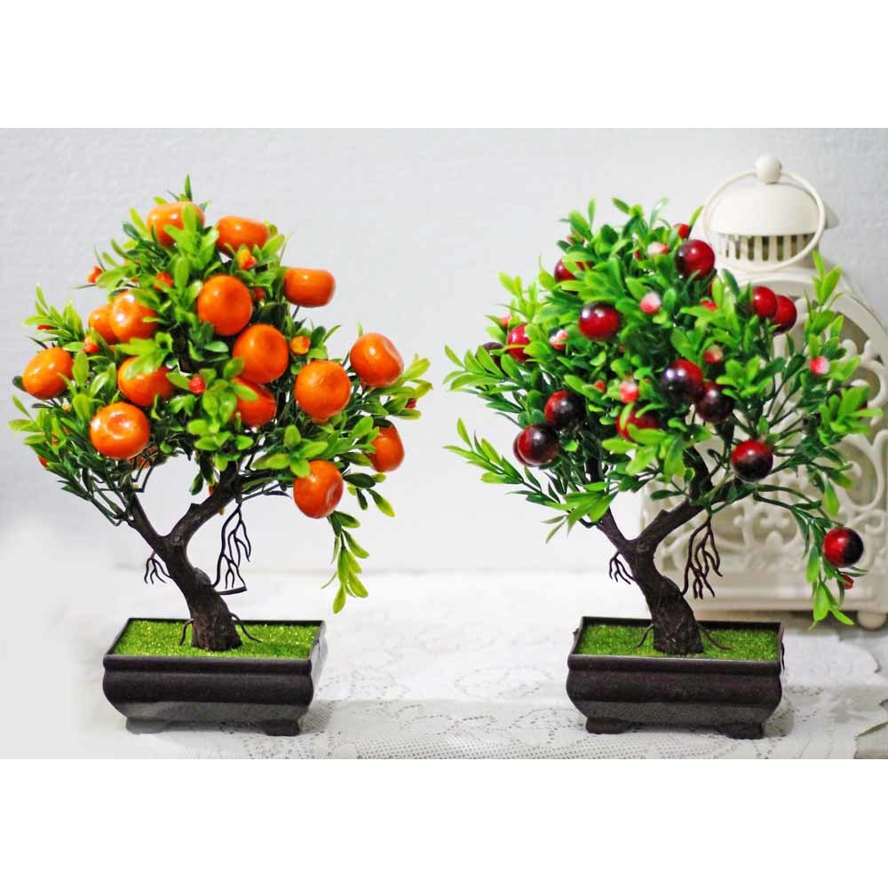New Arival 1 Set Isi 2 Pohon Bonsai Hiasan Hias Plastik Artificial Jeruk Dan Ceri Shopee Indonesia