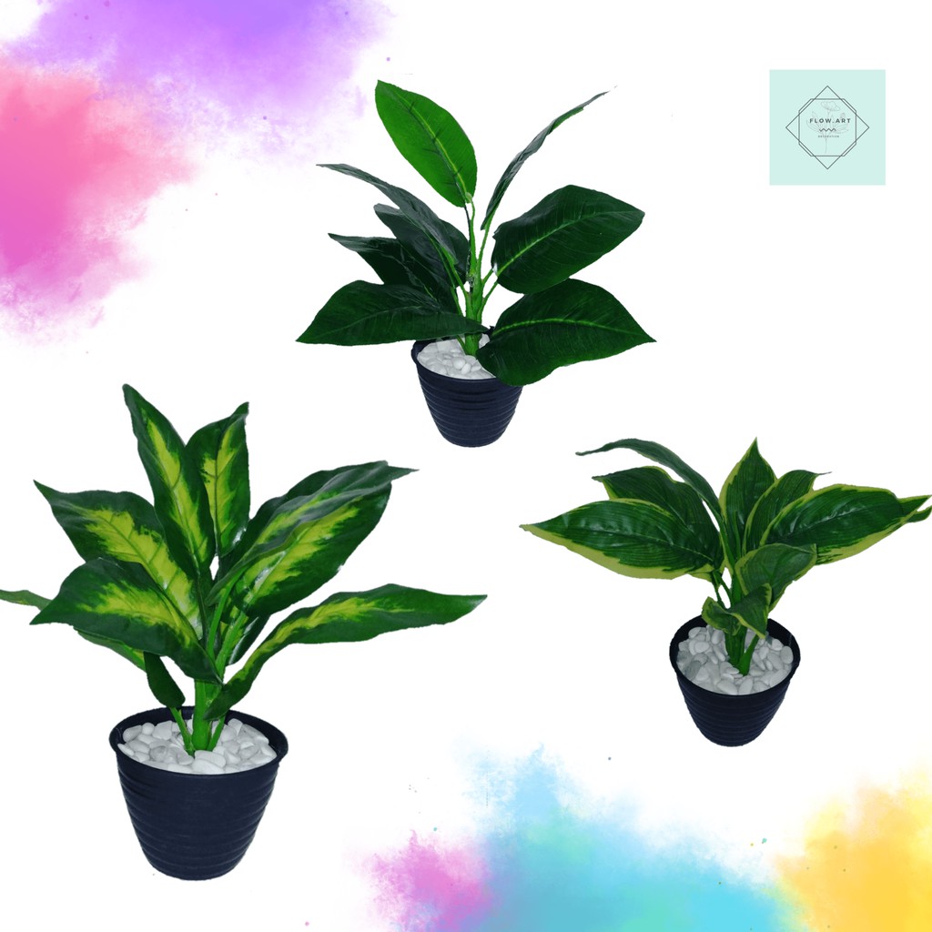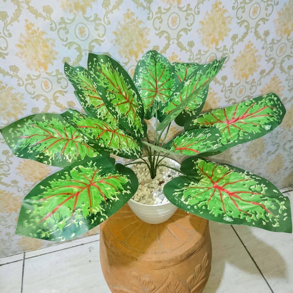 Tanaman Hias Plastik Keladi Hijau Dekorasi Rumah Daun Keladi Artificial Dengan Pot Warna Hijau Shopee Indonesia