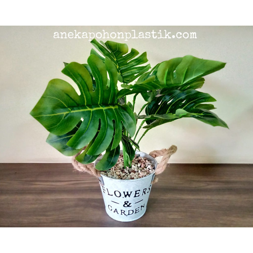 Pohon Monstera Plus Pot Ember Kaleng Motif Tanaman Hias Artifisial Dekorasi Hijau Plastik Rumah Shopee Indonesia