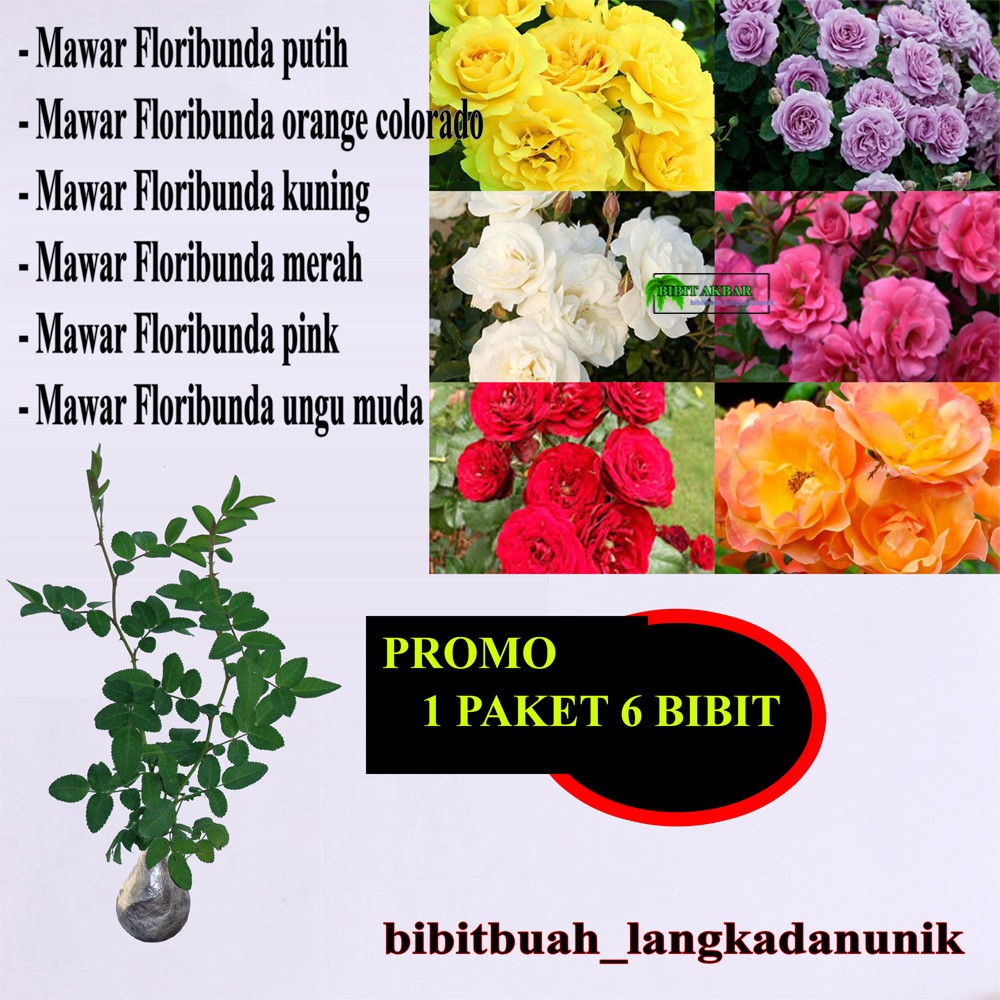 Promo Bibit Tanaman Bunga Hias Mawar Floribunda 6 Pohon 1 Paket 1kg Shopee Indonesia